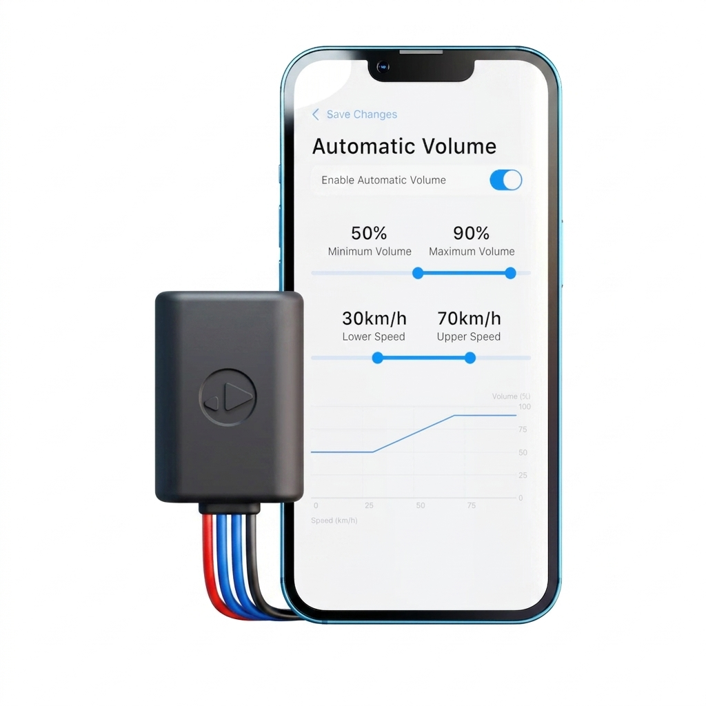 • På appen kan du justere lydprofil, volume efter hastighed og meget mere.